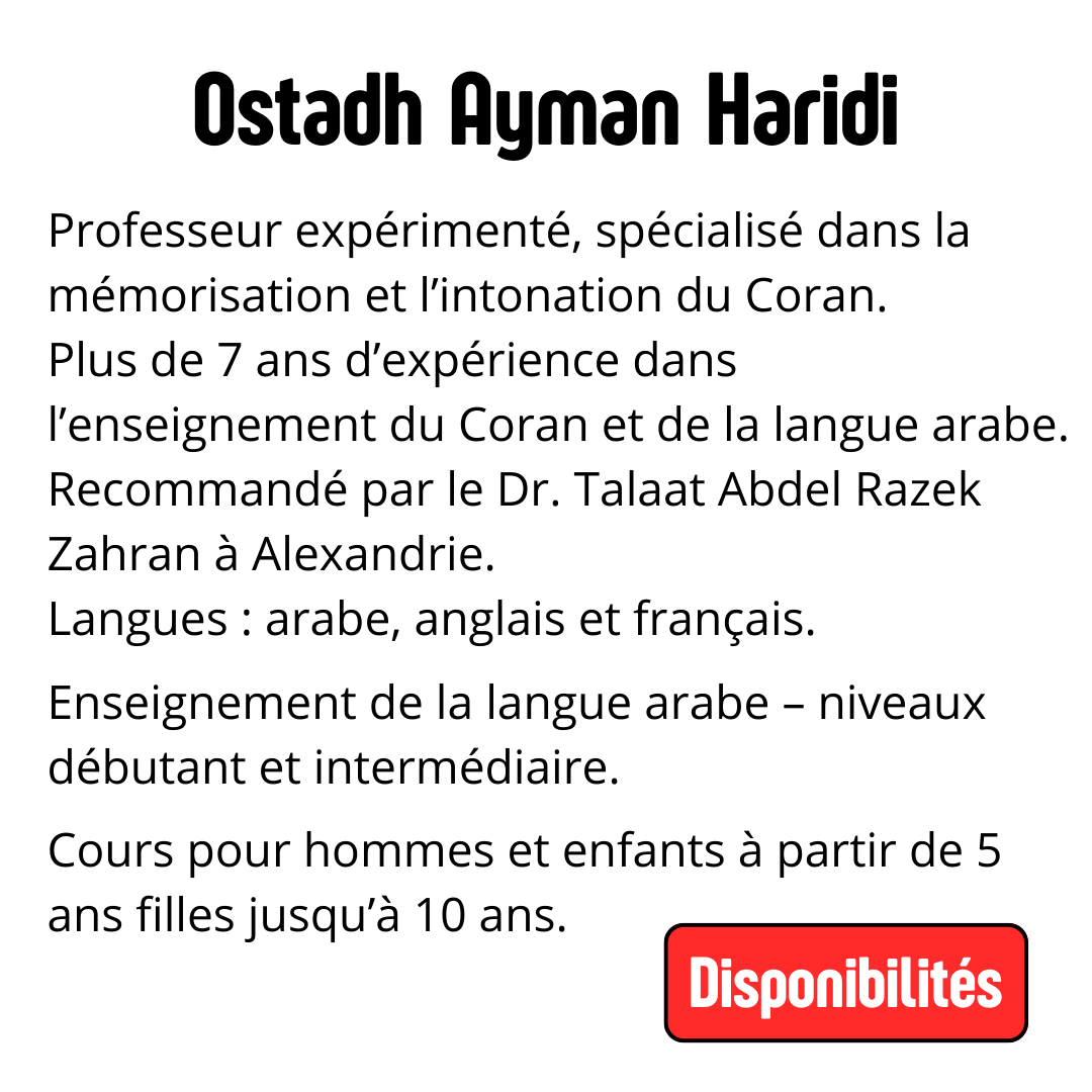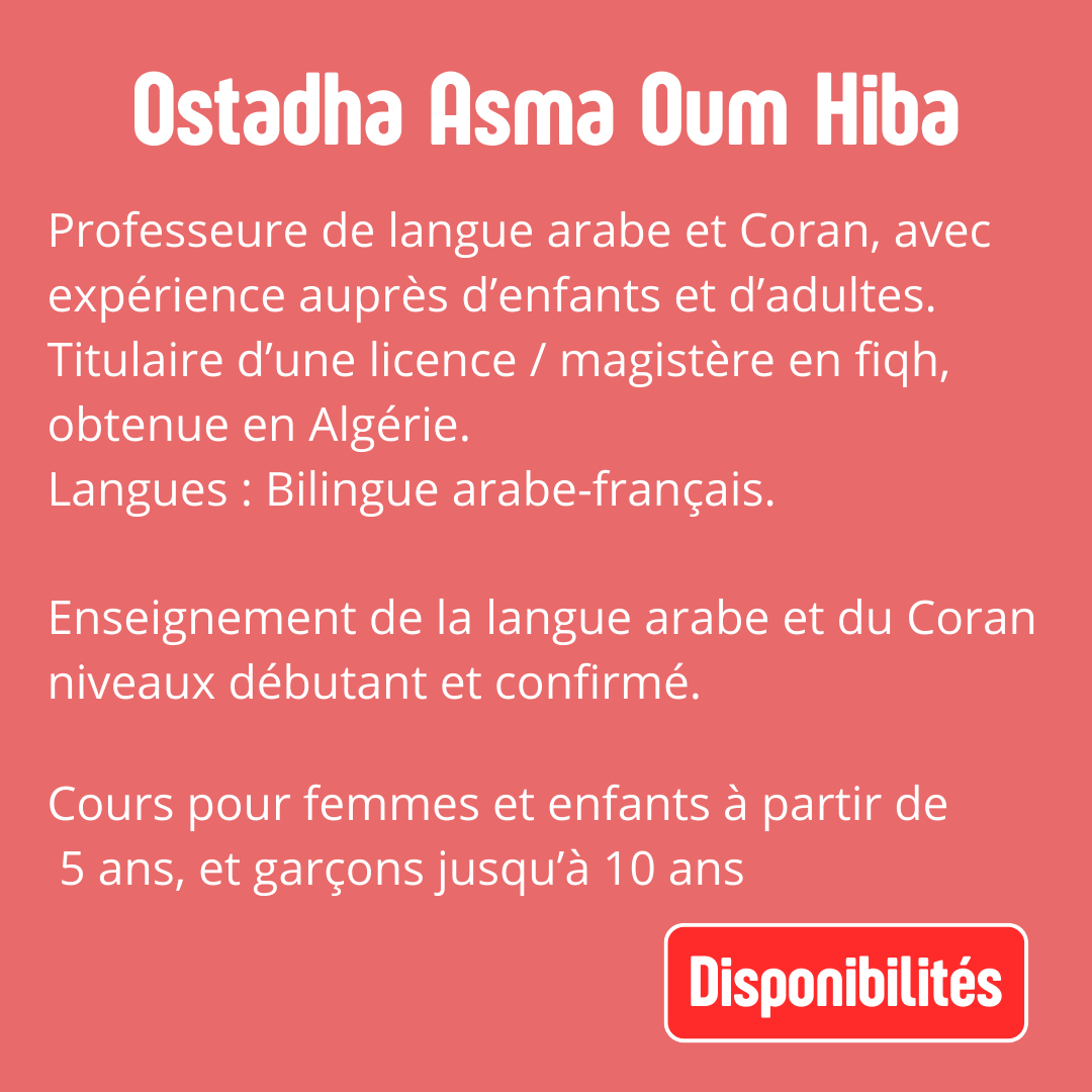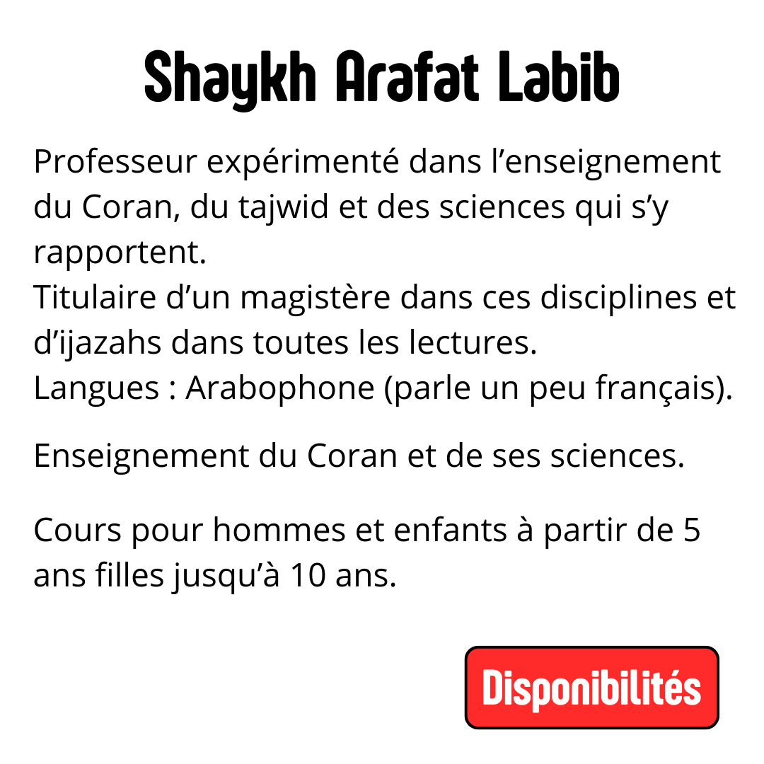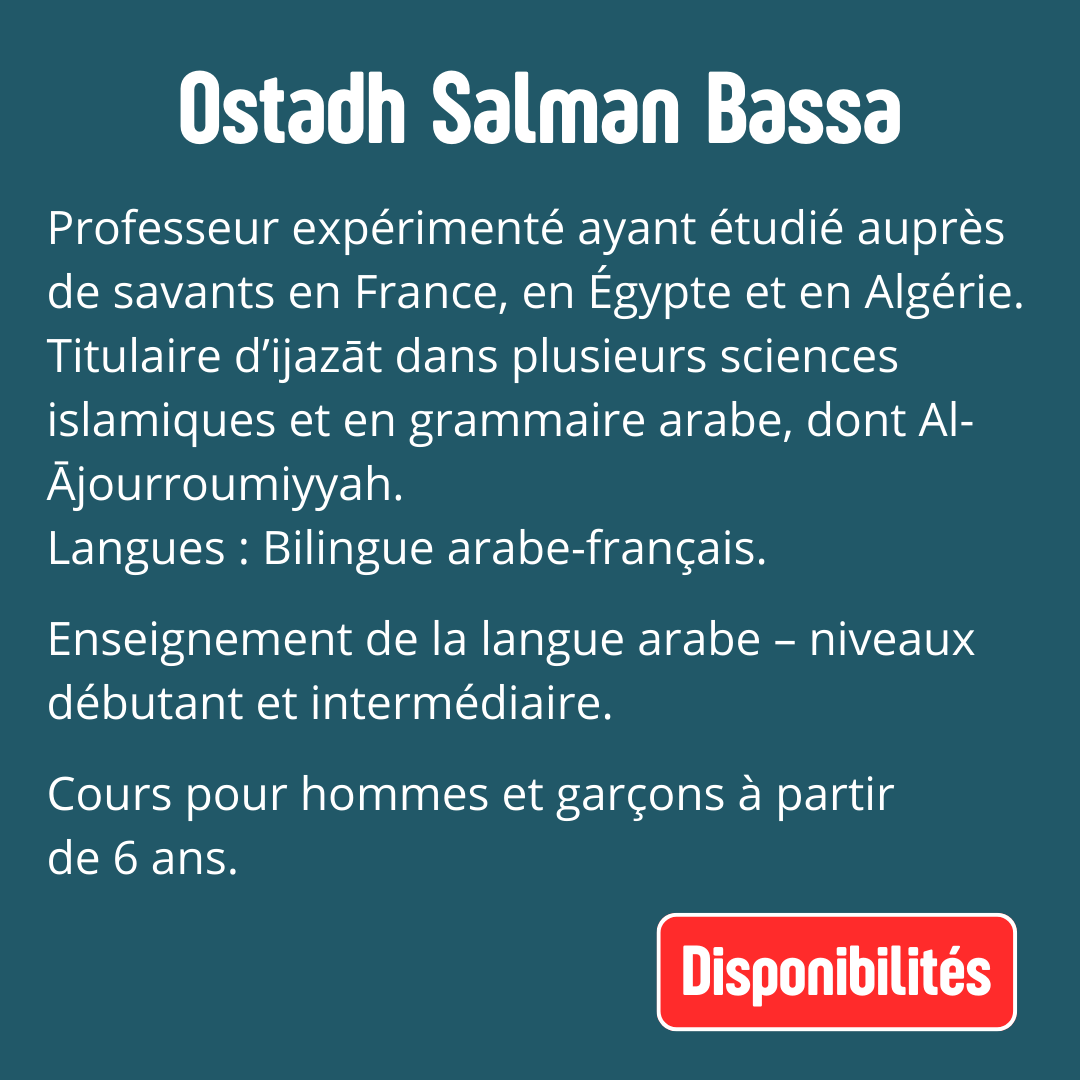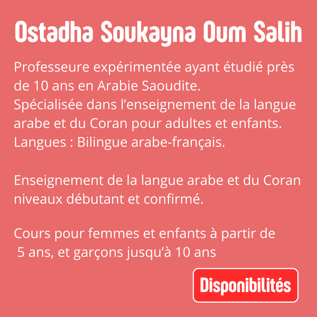 Nos enseignants et enseignantes sont qualifiés, expérimentés, et reconnus pour leur sérieux et leur pédagogie. Ils sont soit diplômés, soit dotés d’un parcours solide dans les sciences islamiques et la langue arabe, et maîtrisent parfaitement leur domaine d’enseignement.