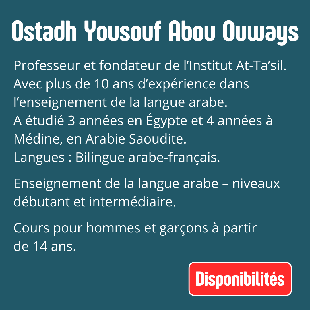 À l’Institut At-Ta’sil, nous accordons une grande importance à la qualité de l’enseignement et au choix de nos professeurs.